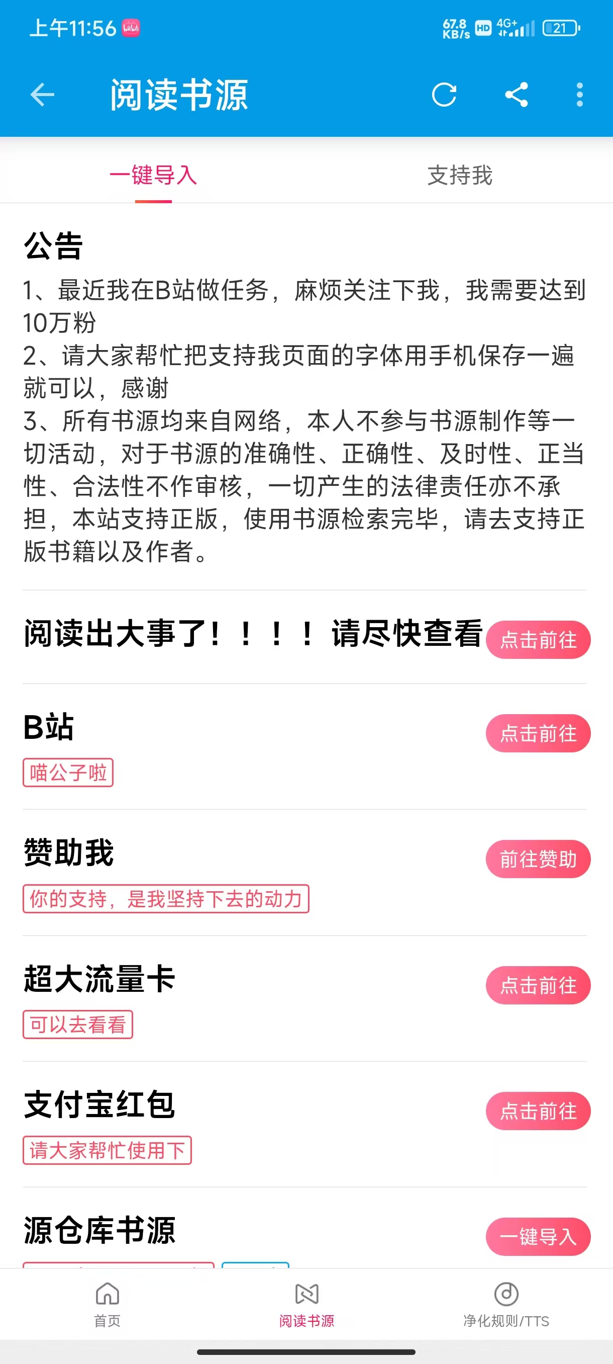 若是觉得书源不够就可以在源仓库里获取新的书源,源仓库每天分享很多书源和订阅源的。