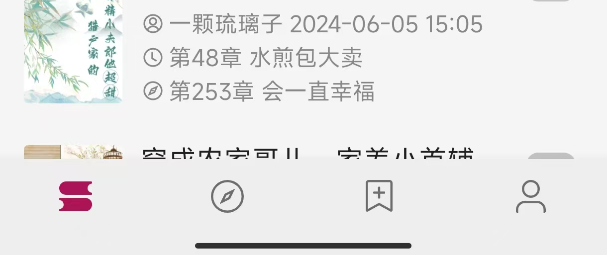 2、点击右下角小人图标。另:点击进来后,其实是什么都没有的,我已经用了很久这个软件了,所以这些内容是我正在看的书,右边一排数字是红色就是没有阅读过,显示的是章节数量,若已经阅读过了,右边那一排就是灰色的,显示未阅读章节数量。