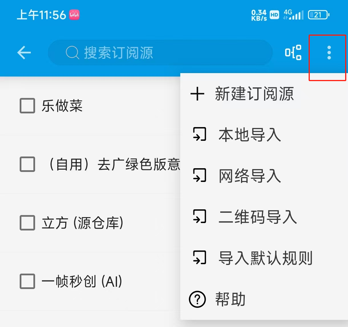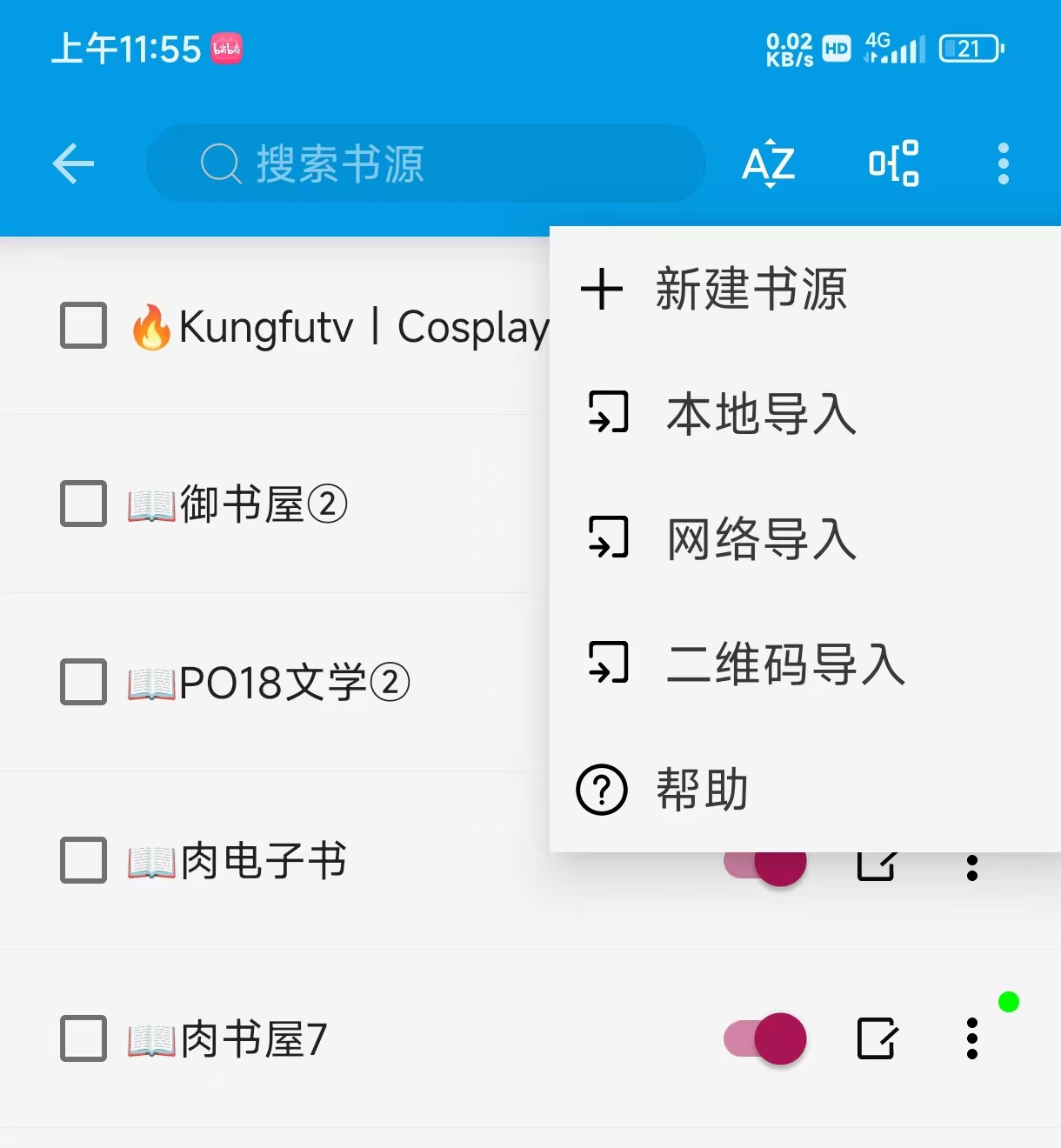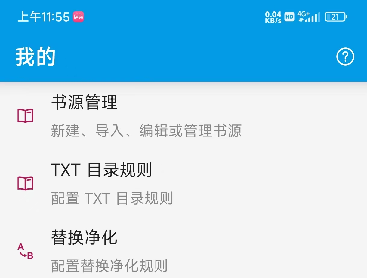 4、点击右上角,后面我会贴一些大佬分享的书源出来。